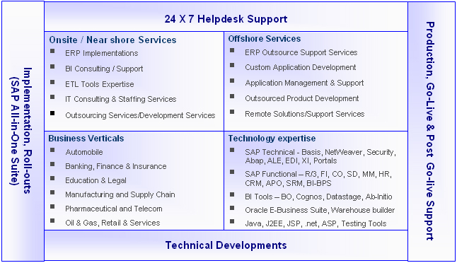 TGC supports all the stages of implementations and also extensively support post go-live support. Delivering customized outsourcing services to enterprises with its global presence and highly reduced costs while meeting new enhancements like, business change requests, technical requests, reporting requests and maintenance.